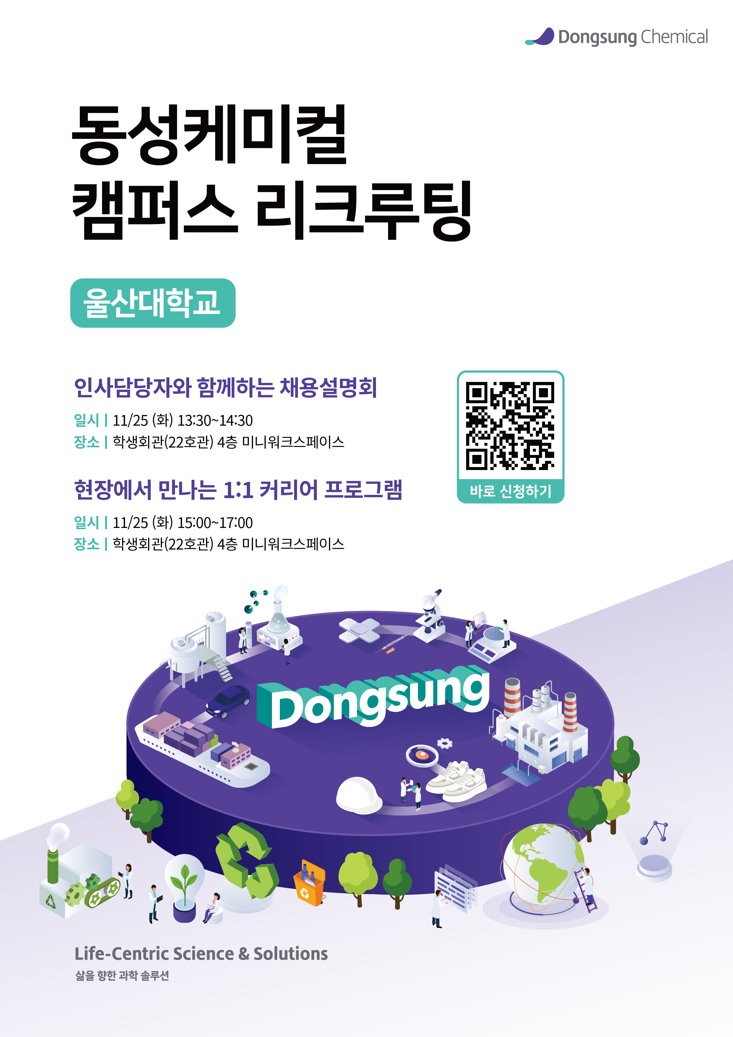 지속가능한 미래를 향해 삶의 이로운 변화를 주도하는 동성케미컬이 울산대 캠퍼스로 직접 찾아옵니다.